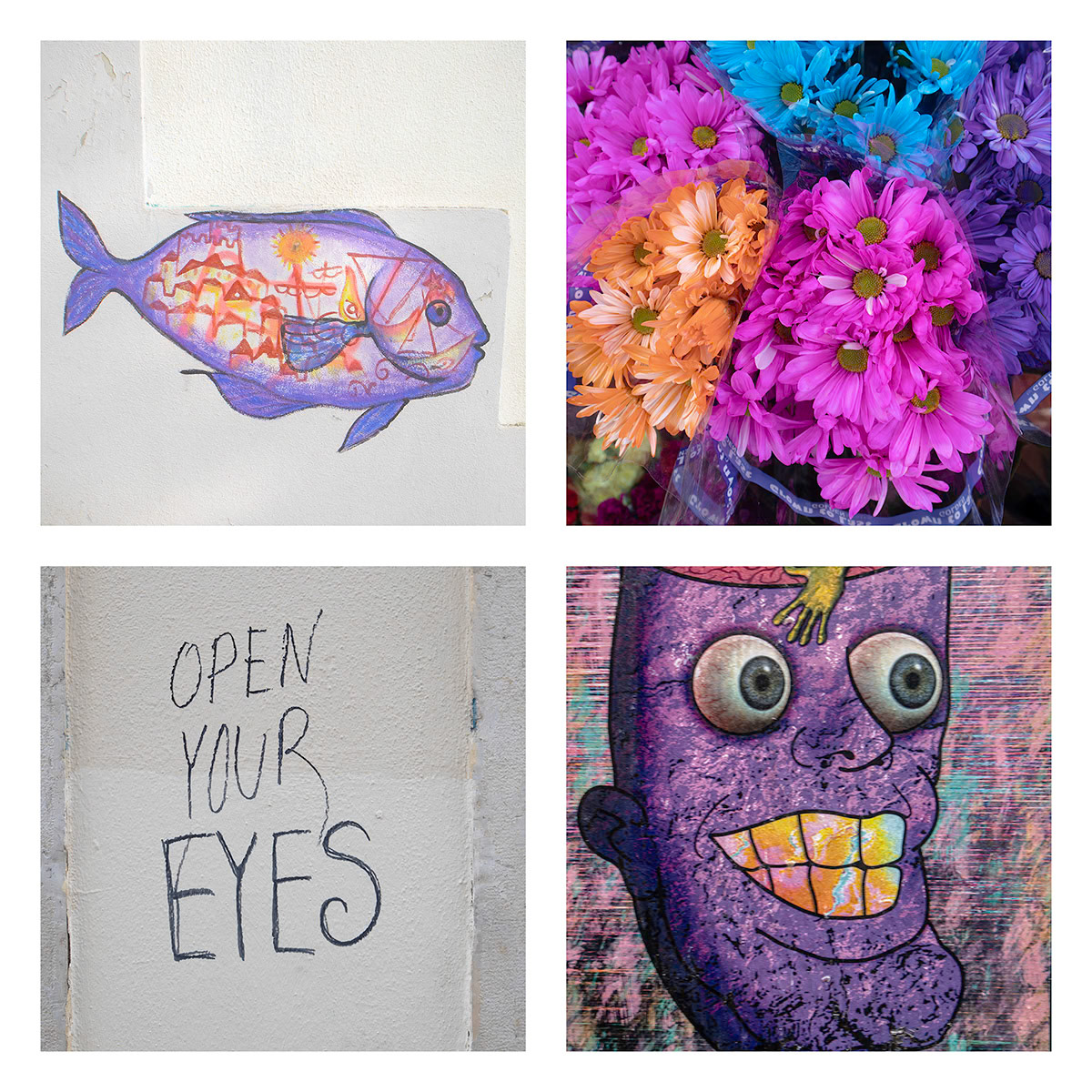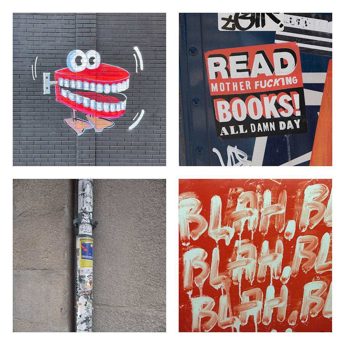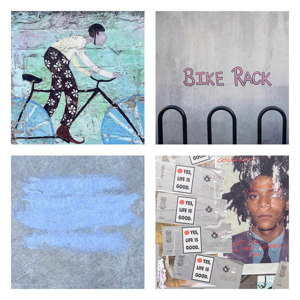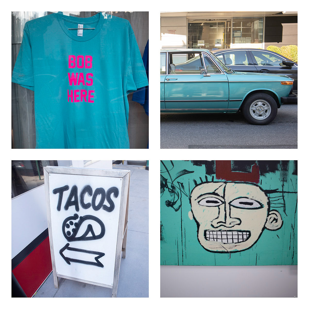 I continue an ongoing project of combining four images, typically found objects and artifacts are connected by theme, shape, or color. These composites present a narrative of a place, moment in time, or a thought.